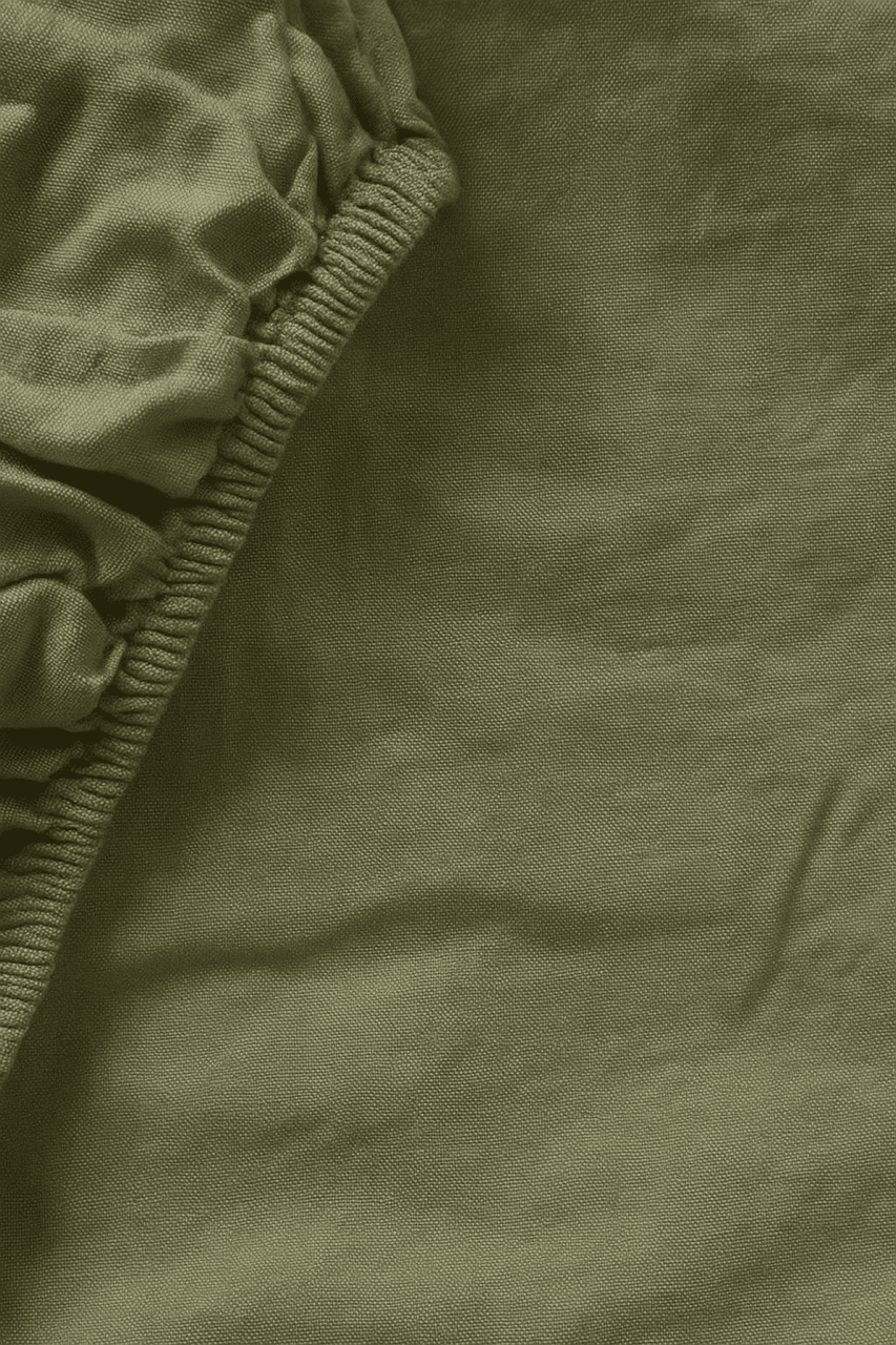 Découvrez notre drap-housse en lin lavé et coton lavé, coloris vert eucalyptus, avec un bonnet de 30 cm, adapté aux matelas épais.
