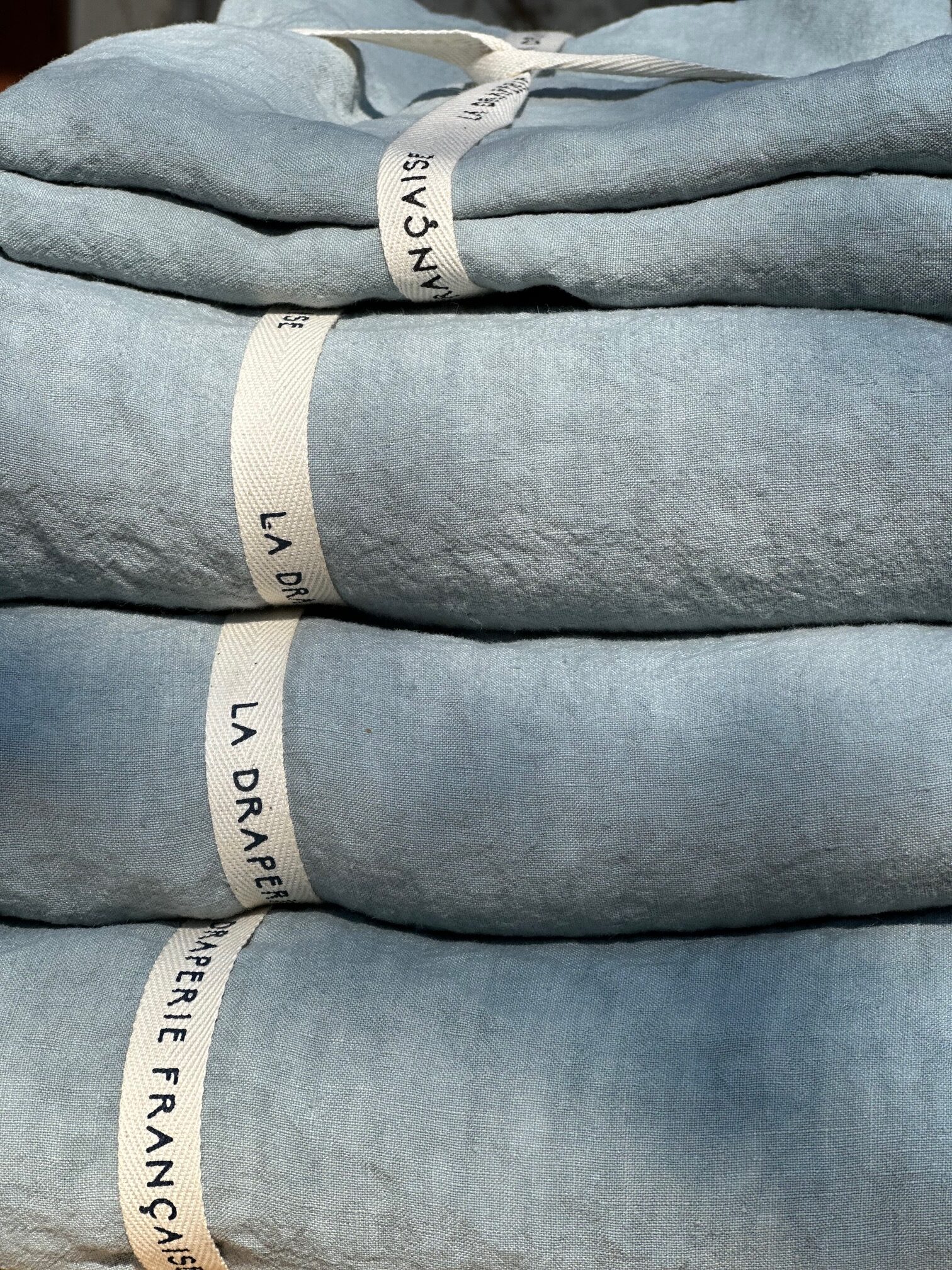 Housse de couette en lin lavé bleu ciel – La Draperie Française