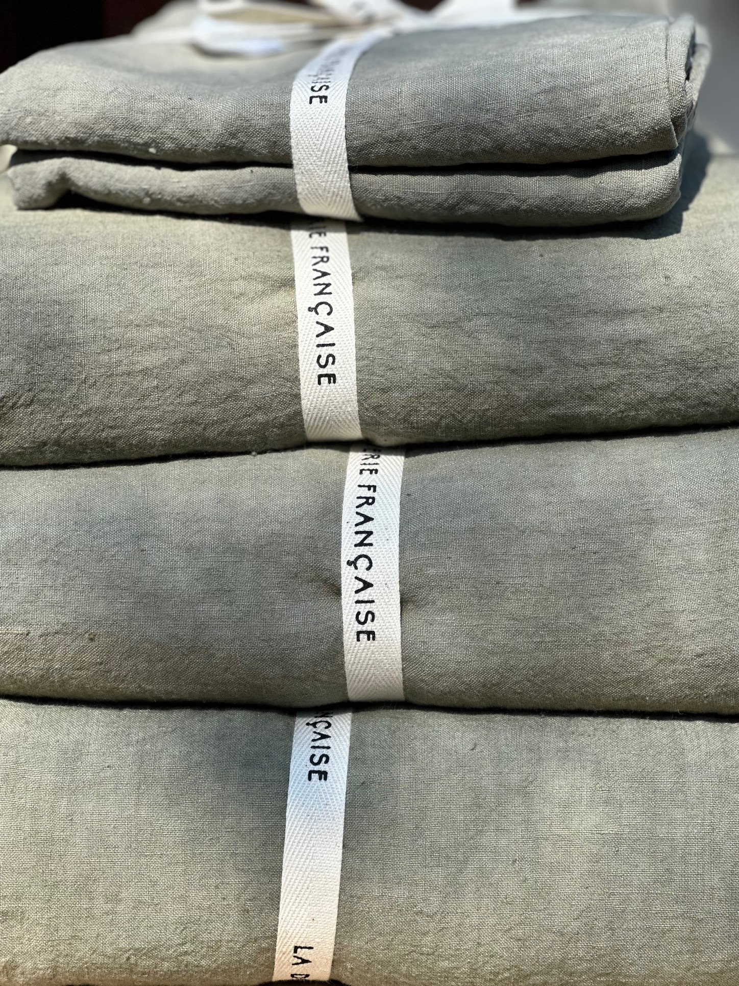 Nappe en lin lavé vert eucalyptus