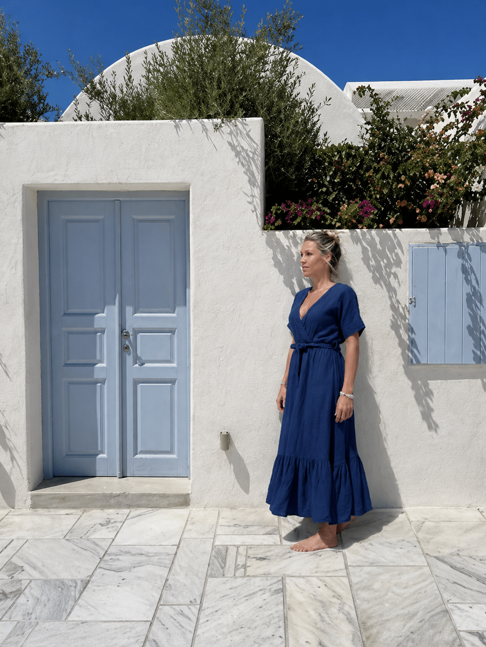 Polyvalente et facile à associer, cette robe longue en double gaze de coton trouve naturellement sa place dans un vestiaire estival ou dans une garde-robe aux accents bohèmes et méditerranéens. Son style épuré permet de la porter de jour comme de soirée, selon l’envie.